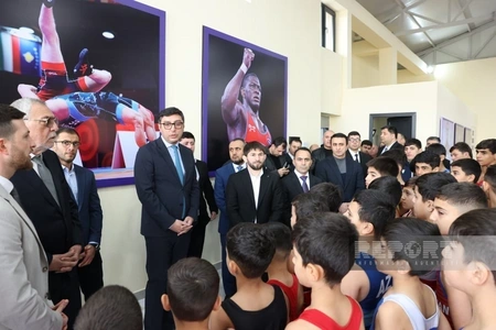 Daha sonra nazir və qonaqlar zalla tanış olublar. T.Məmmədov zaldakı avadanlıqlar, güləşin sirlərinə yiyələnən uşaqlar və digər məsələlər haqqında məlumat verib, qarşıdakı planları açıqlayıb. Daha sonra yeniyetmə və azyaşlı güləşçilərin məşq prosesi nümayiş etdirilib.