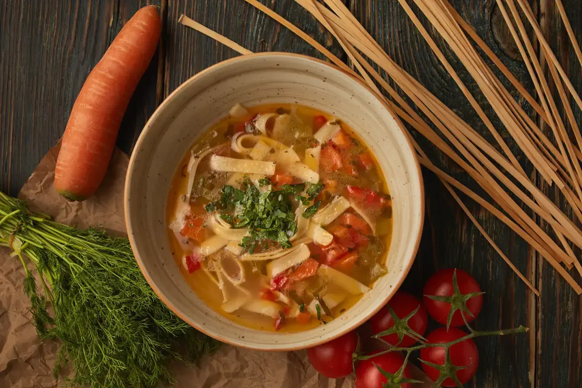 Göbələk bulyonunda əriştəli şorba