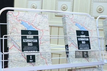 Daha sonra QAİ sədri Əziz Ələkbərli və tədqiqatçı Səbuhi Hüseynovun müəllifləri olduğu "Qərbi Azərbaycan İrsi: Ermənistanda azərbaycanlılara məxsus qəbiristanlıqların sistemli qaydada dağıdılmasının nəticələri və beynəlxalq hüquqi məsuliyyətə dair hesabat və materiallar" kitabının I cildi təqdim edilib.