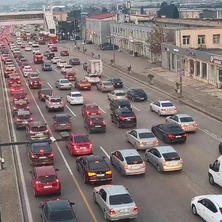 Bakının bir sıra yollarında nəqliyyatın sıxlığı yaranıb.