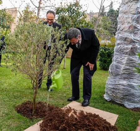 Ziyarət proqramı çərçivəsində Cevdet Yılmazın əlamətdar ziyarətinin xatirəsinə Katibliyin daxili həyətyanı sahəsində zeytun ağacı əkilib.