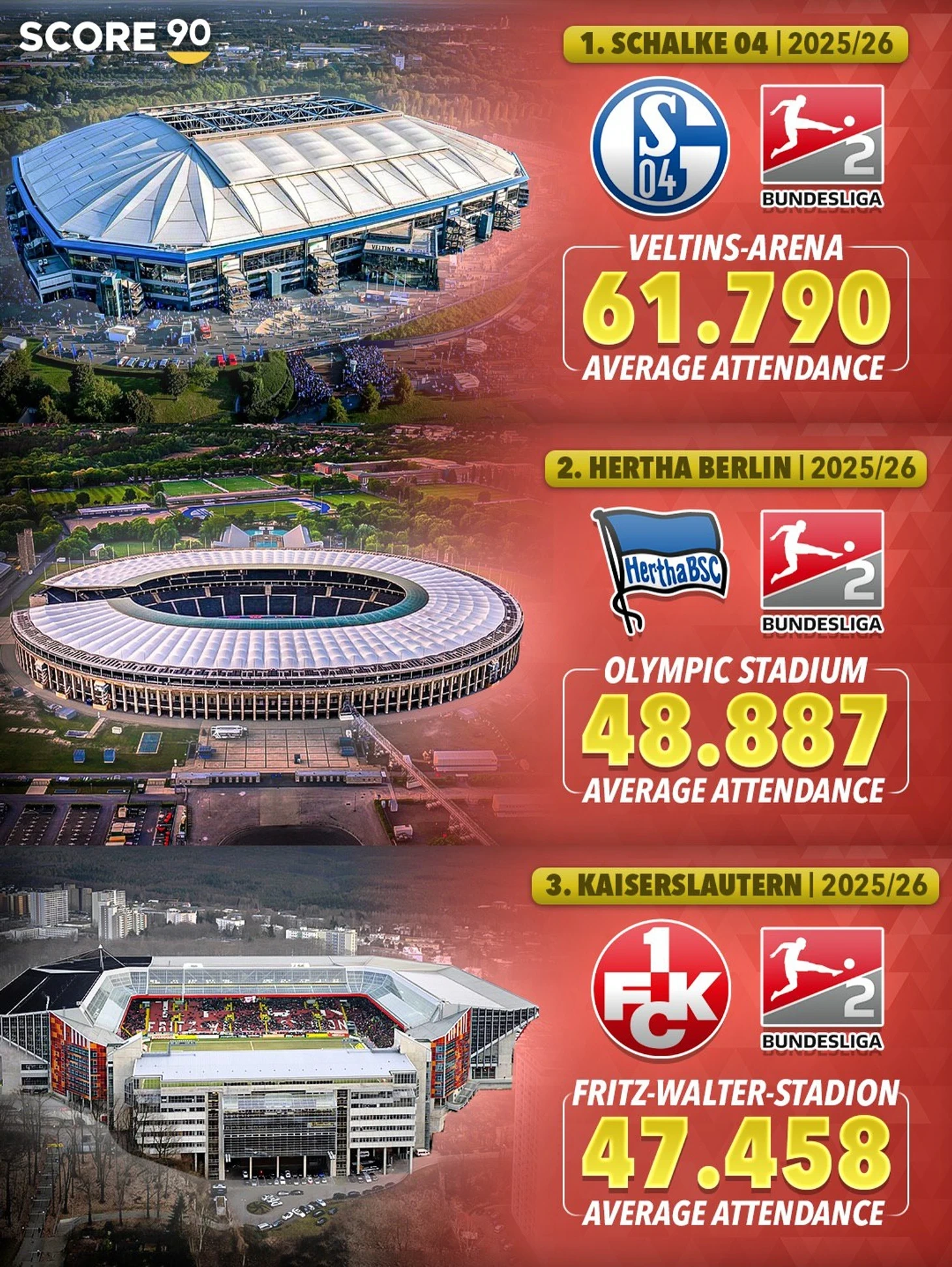 Almaniyanın ikinci divizionunda da rəqəmlər mükəmməl qaydadadır. "Şalke" və "Herta"nın azarkeşləri klublarının aşağı liqaya düşməsindən sonra belə ev oyunlarını fəal şəkildə izləməyə davam edirlər.