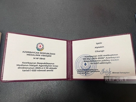 Türkiyənin Azərbaycandakı səfirliyinin mətbuat müşaviri Alptekin Cihangir İşbilir "Azərbaycan milli mətbuatının 150 illiyi (1875–2025)" Azərbaycan Respublikasının yubiley medalı ilə təltif edilib.