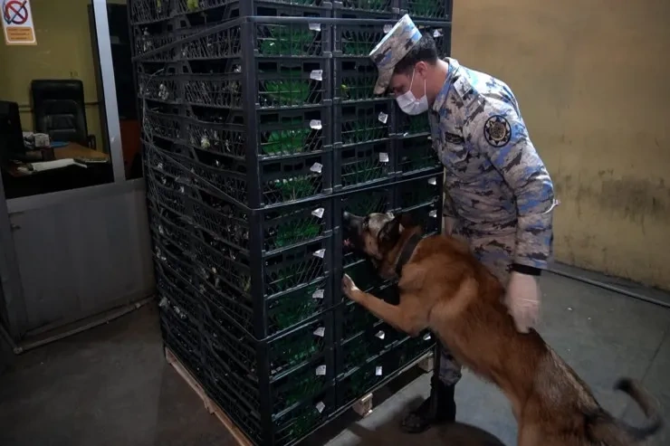 Stasionar rentgen qurğusunda aparılan baxış zamanı şübhəli cizgilər müşahidə edildiyindən yük avtomobili kinoloji xidmət itinin tətbiqi ilə ətraflı gömrük yoxlamasından keçirilib. Nəticədə nəqliyyat vasitəsindəki iki paletdə gömrük nəzarətindən gizlədilən narkotik vasitələr aşkarlanıb.