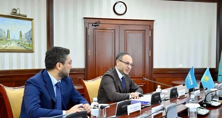Görüşdə Qazaxıstan Xarici İşlər Nazirinin müavini cənab Alibek Bakayev və Qazaxıstan Parlamentinin Beynəlxalq əlaqələr, müdafiə və təhlükəsizlik komitəsinin sədri Aygül Kuspan iştirak edib.