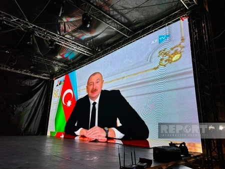 Prezident İlham Əliyevin 31 Dekabr - Dünya Azərbaycanlılarının Həmrəyliyi Günü və Yeni il münasibətilə Azərbaycan xalqına müraciəti meydanda quraşdırılan monitor vasitəsilə yayımlanıb.
