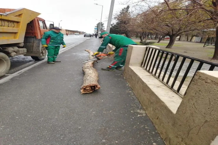 Sınan ağaclar və qırılan budaqlar birliyin növbətçi briqadaları tərəfindən operativ şəkildə görütülüb, ərazi təmizlənib.