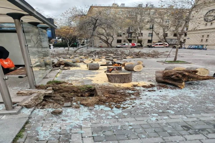 Güclü külək Bakı küləyi külək ağacları sındırdı Bakı icra hakimiyyəti