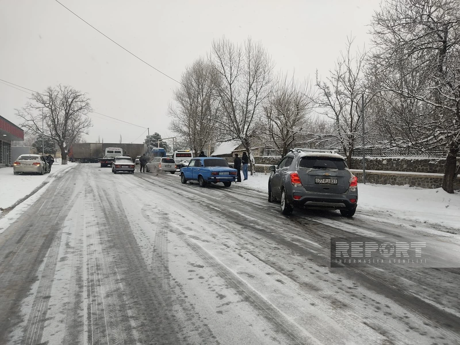 Əsasən yük avtomobillərinin hərəkəti çətinləşib. Yolda qalan avtomobillər yolun hərəkət hissəsindən çıxarılıb.