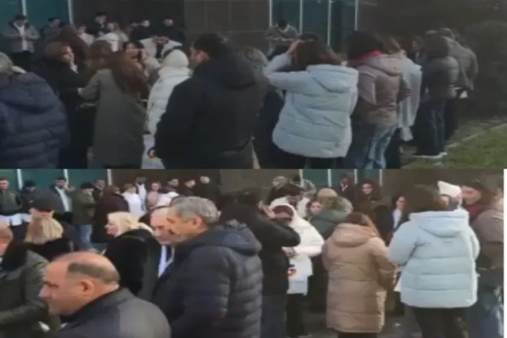 Bölgələrdən gəlmiş bir qrup tibb işçisi işdən çıxarıldığı üçün TƏBİB-in qarşısında etiraz edirlər.