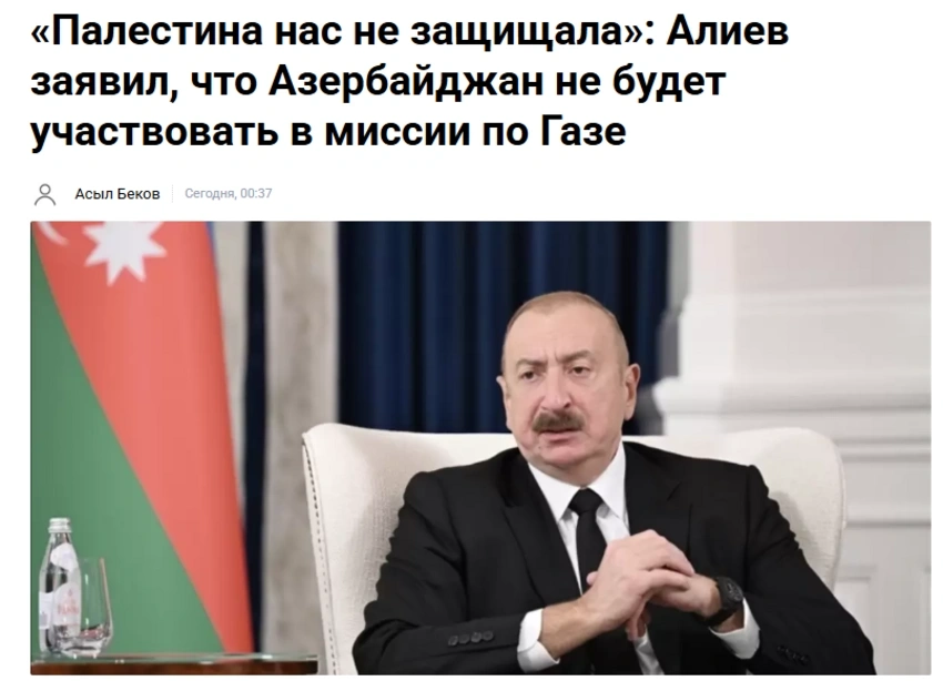 Azərbaycanın Qəzza zolağında mümkün missiyalarda iştirak etmək niyyətində olmadığı barədə bəyanatları ABŞ, Pakistan, Banqladeş və Qazaxıstanın KİV-ləri geniş işıqlandırıb.