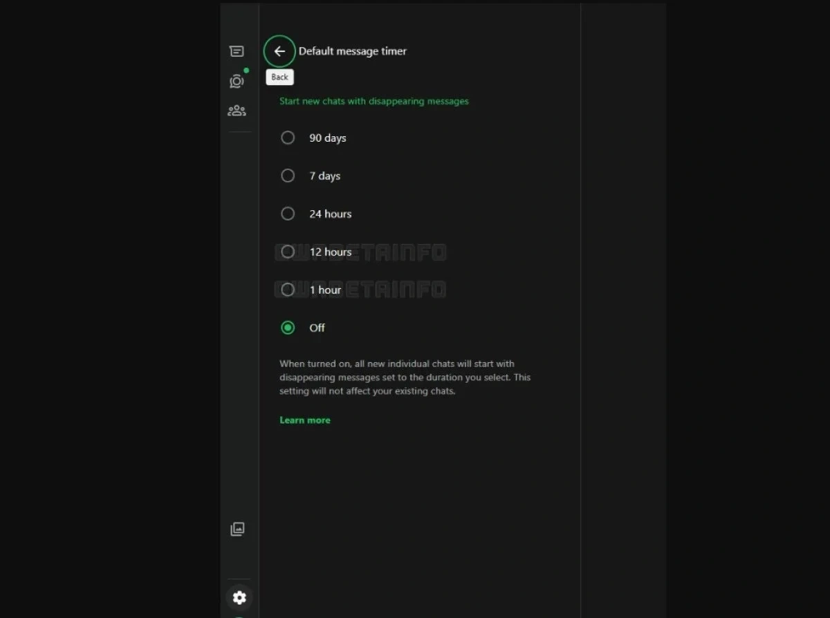 Yeni aşkarlanan ekran görüntülərinə görə, yoxa çıxan mesajlar xüsusiyyətinə iki yeni seçim əlavə olunur: 12 saat və 1 saat.