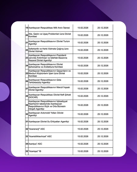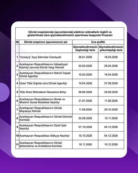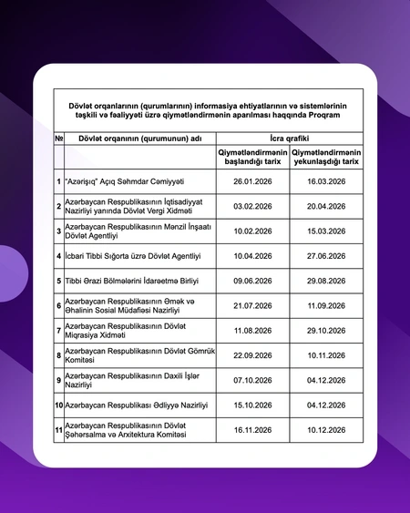 Bu məqsədlə 2026-cı il üzrə diaqnostika və qiymətləndirmələrin aparılması nəzərdə tutulan qurumların siyahısını əhatə edən Fəaliyyət Planı hazırlanıb və ictimaiyyətə təqdim olunur.
