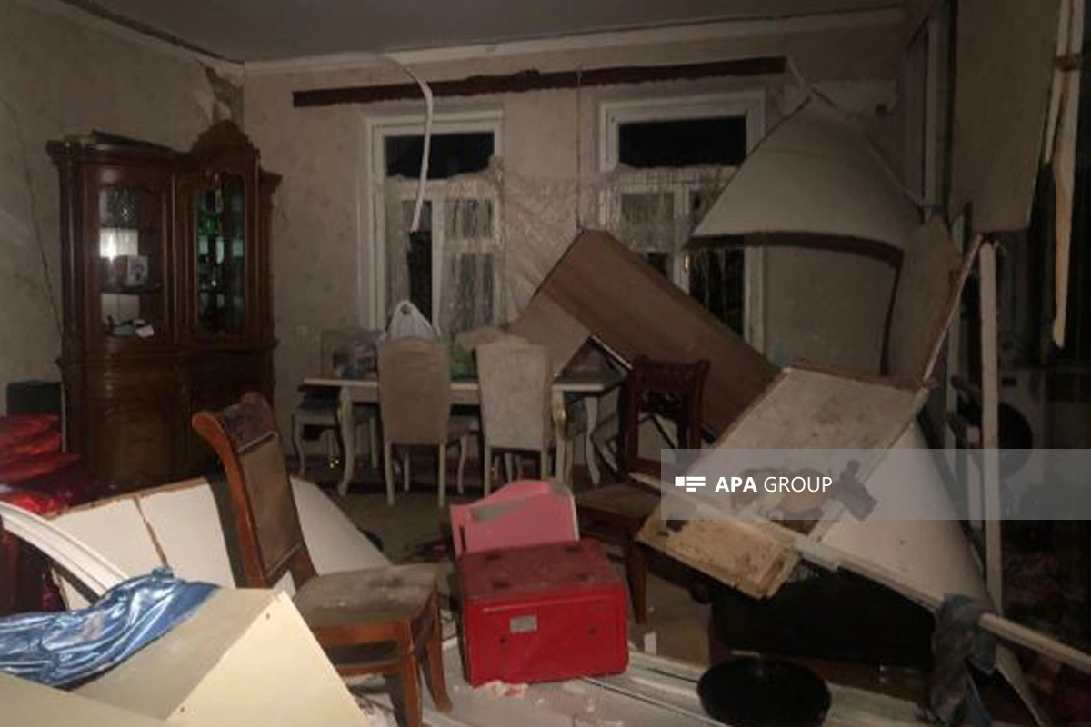 Hadisə nəticəsində mənzilin arakəsmə divarları uçub, pəncərə çərçivələri yerindən çıxıb, 4 nəfər xəsarət alıb.