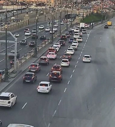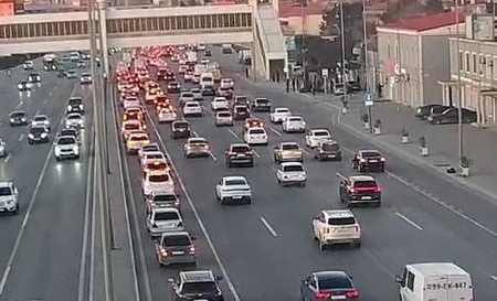 13. Ziya Bünyadov prospekti, Müzəffər Nərimanov küçəsi ilə kəsişmədən "20 Yanvar" metro stansiyası istiqamətində sıxlıq müşahidə olunur.