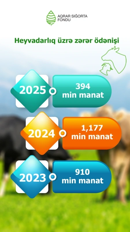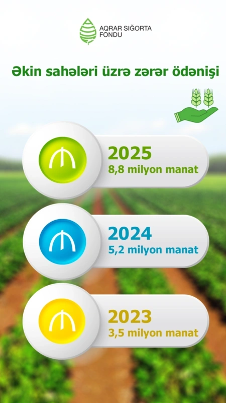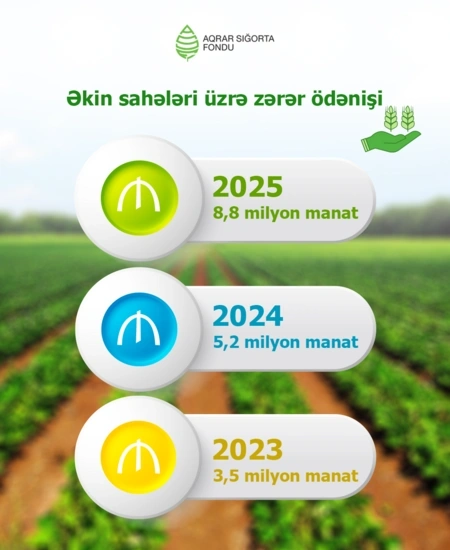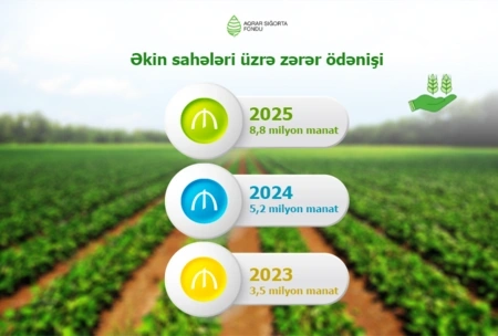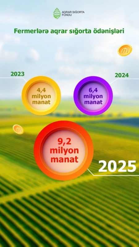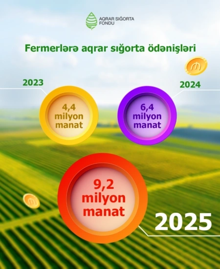 Bundan başqa, 2025-ci ildə Azərbaycan müxtəlif hadisələr səbəbindən zərərlə üzləşən fermer və təsərrüfatlara ümumilikdə 9,2 milyon manat sığorta ödənişi edilib. Bu 2024-cü ilin ödənişləri ilə müqayisədə 44 %, 2023-cü illə müqayisədə isə 2,1 dəfə artıqdır.