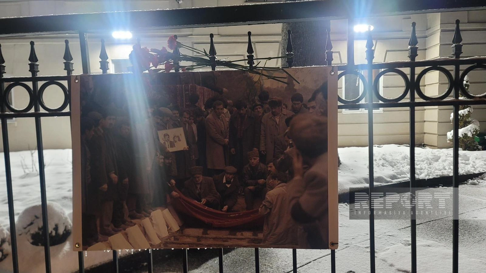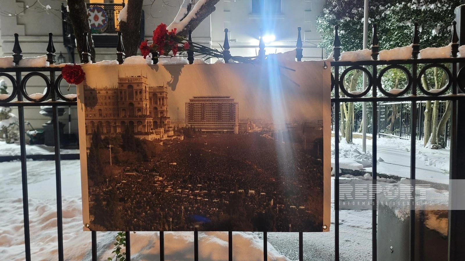 “Report”un ABŞ bürosu xəbər verir ki, sərgidə 1990-cı il 20 yanvar tarixində sovet ordusunun Bakıya qəfil hücumu zamanı yaşanmış dəhşətli yanvar gecəsində lentə alınmış fotoların yer aldığı plakatlar nümayiş etdirilib.