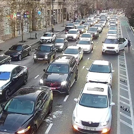 Bakının bir sıra yollarında nəqliyyatın sıxlığı yaranıb.