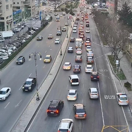 10. Yusif Səfərov küçəsi, mərkəz istiqamətində sıxlıq müşahidə olunur.