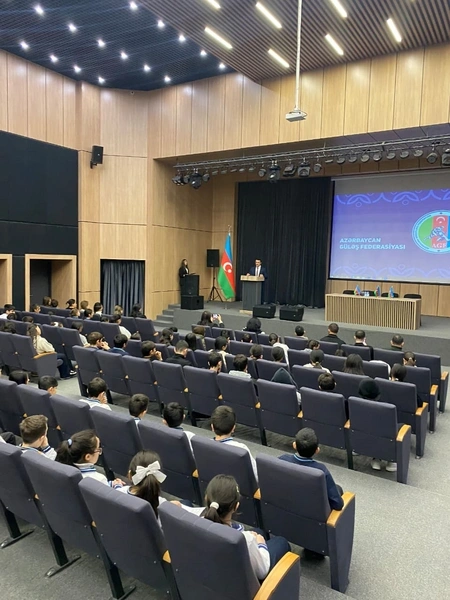 Tədbirdə idmançılar çıxış etdikləri yarışlar və əldə etdikləri nəticələr barədə şagirdlərlə söhbət edib, onların suallarını cavablandırıblar.