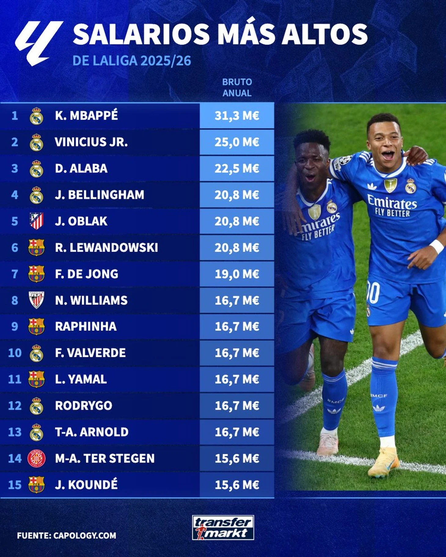 2025/26 mövsümündə La Liqada ən çox qazanan futbolçuların reytinqinə "Real"ın dörd oyunçusu başçılıq edir.