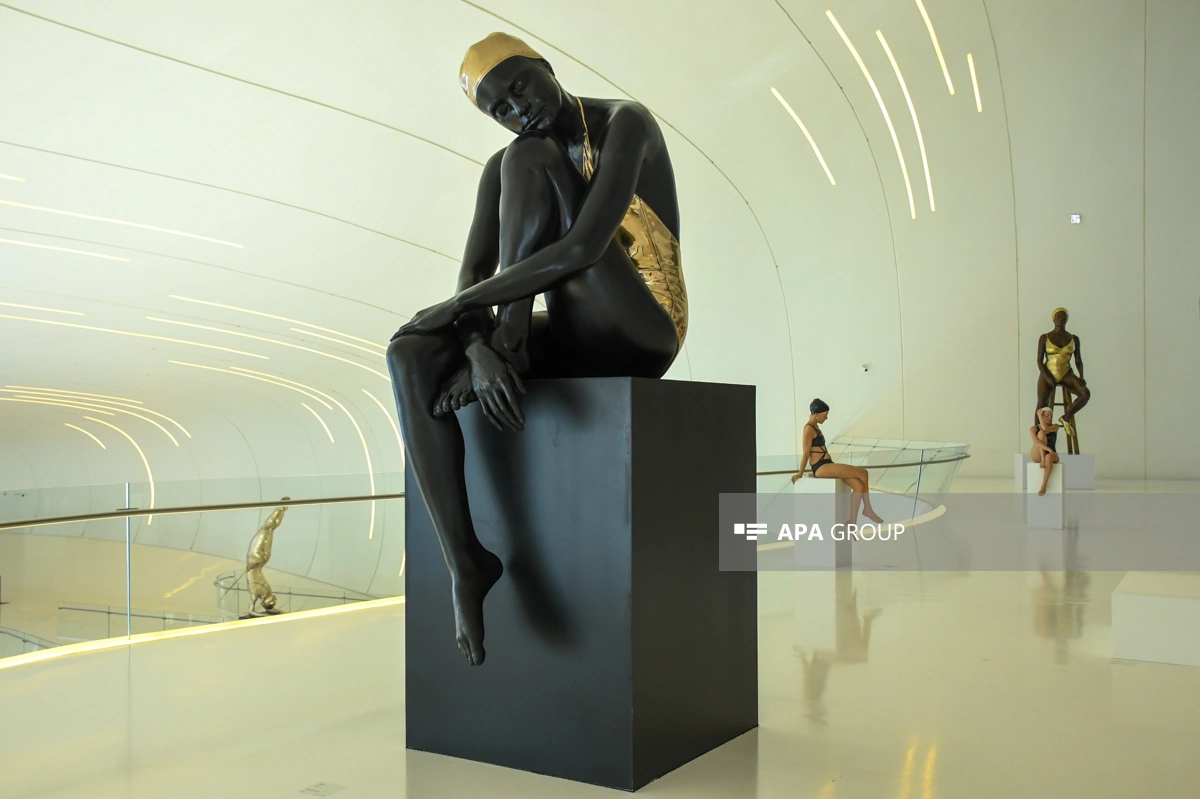 Zalın küncündə dayanan kiçik bir bürünc fiqur diqqətimi çəkir. O, digərləri kimi rəngli deyil, amma onun üzərindəki işıq oyunları suyun hərəkətini elə dəqiqliklə verir ki, sanki bürünc indicə əriyib yerə axacaq. Bu, sənətkarın maddə üzərindəki tam hakimiyyətidir. Mən bu sənət möcüzəsinin Bakıda, Heydər Əliyev Mərkəzi kimi bir məkanda sərgilənməsini həm də şəhərimizin mədəniyyət areialının bir parçası kimi görürəm. Biz artıq sadəcə klassik sənətlə deyil, dünyanın ən avantürist və ən cəsarətli sənət cərəyanları ilə eyni dildə danışırıq.