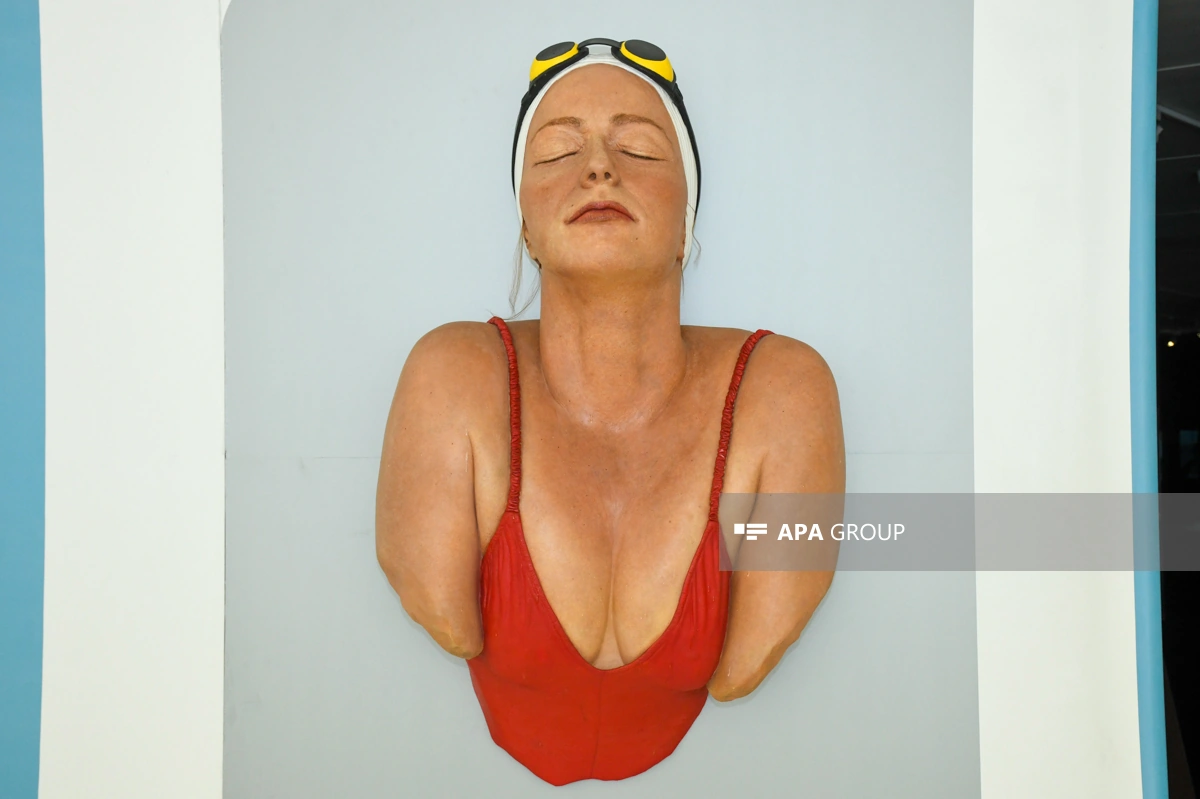 Mən indi bir başqa eksponata, başında sarı papaq olan bir "üzgüçü"yə yaxınlaşıram. Onun dodaqlarının kənarındakı o kiçik təbəssüm... Bu, qalib gəlmiş insanın təbəssümüdür. O, dalğaları aşaraq gəlib və indi dincəlir. Mən də onun yanında oturub dincəlmək istəyirəm. Amma reportaj davam edir, mənim gözlərim isə daha çox detal, daha çox "canlılıq" axtarır.