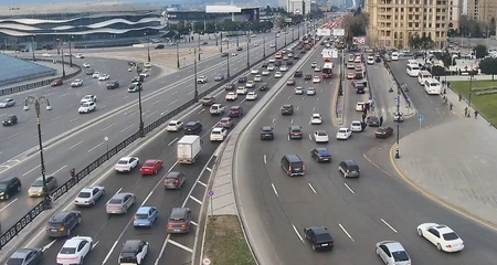 Bakının bir sıra yollarında nəqliyyatın sıxlığı müşahidə olunur.