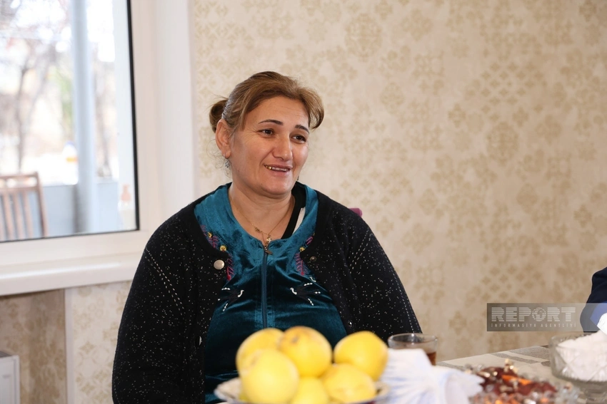"Dörd gündür, yenidən ata-baba yurdundayıq. Mən Ağdərədən çıxanda 14 yaşım vardı, bizim kənd buradan bir az aşağıda yerləşirdi, adı Orta Güney kəndi idi. İndi ailəmlə, iki oğlumla yenidən buradayıq, çox şükür".