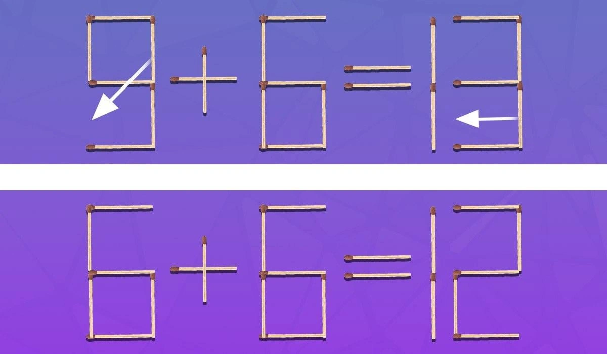 Gəlin birlikdə anlayaq. Uyğunluqlardan birini ən aşağıya çəkməklə 9 rəqəmini 6-ya çevirmək olar. İki 6-nın cəmi 12-yə bərabərdir. Bu rəqəmi əldə etmək üçün 3 rəqəmini dəyişdirməlisiniz.