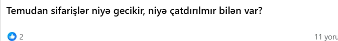 Xaricdən verilən sifarişlərdə bağlamaların uzun müddət, 1 aya yaxın gömrükdə qaldığı bildirilir.