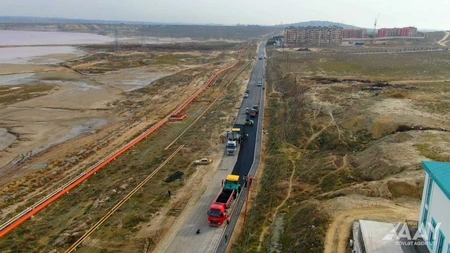 "Report" agentliyə istinadən xəbər verir ki, iki hərəkət zolaqlı avtomobil yolunun uzunluğu 2 kilometr, eni isə 9 metrdir.