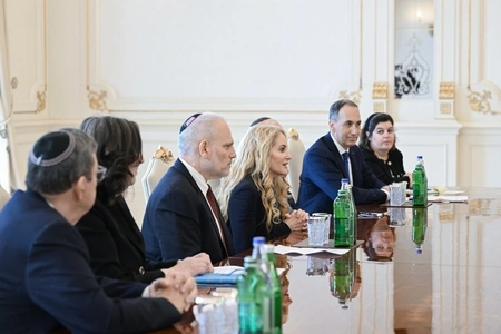 Azərbaycan Respublikasının Prezidenti İlham Əliyev fevralın 9-da ABŞ-nin Əsas Amerika Yəhudi Təşkilatlarının Prezidentləri Konfransının sədri Betsi Berns Kornun rəhbərlik etdiyi nümayəndə heyətini qəbul edib.