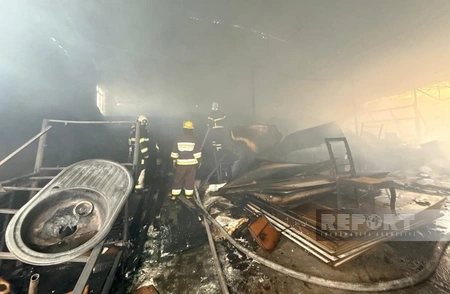 Naxçıvan şəhərinin Qaraxanbəyli kəndində yerləşən mebel sexində yanğın olub.