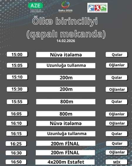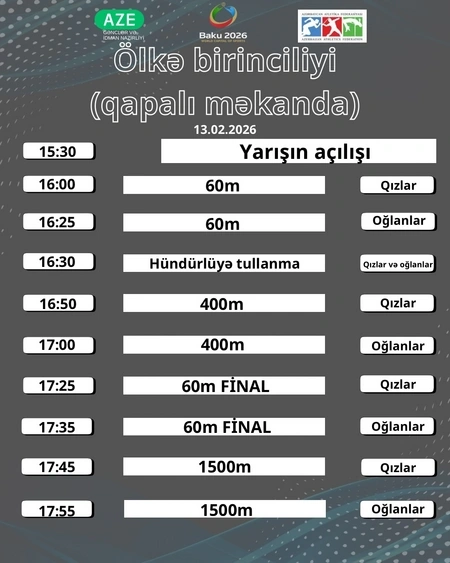 Qeyd edək ki, yarış Gənclər və İdman Nazirliyi ilə Azərbaycan Atletika Federasiyasının birgə təşkilatçılığı ilə fevralın 13-14-də keçiriləcək.