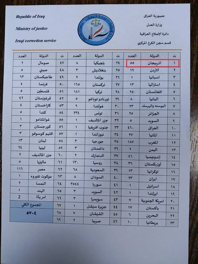 Suriya həbsxanalarından İraqa köçürülən İŞİD-çi məhkumların arasında 55 nəfər azərbaycanlı da var.