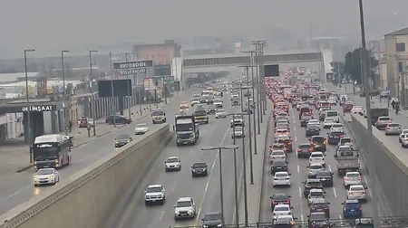 Bakının bir sıra yollarında nəqliyyatın sıxlığı müşahidə olunur.