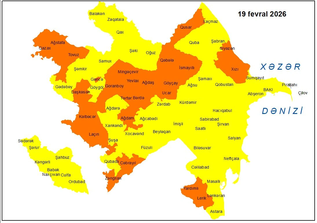 Milli Hidrometeorologiya Xidmətindən Lent.az-a bildirilib ki, Zəngilan, Cəbrayıl, Ağdam, Laçın, Kəlbəcər, Daşkəsən, Gəncə, Goranboy, Naftalan, Tovuz, Ağstafa, Qazax, Mingəçevir, Yevlax, Ağdaş, Ucar, Bərdə, Tərtər, Göyçay, İsmayıllı, Qəbələ, Qusar, Siyəzən, Xızı, Lerik, Yardımlıda narıncı xəbərdarlığa uyğun olaraq şimal-qərb küləyi əsəcək, küləyin sürəti 20.8-28.4 m/san-dək güclənəcək.