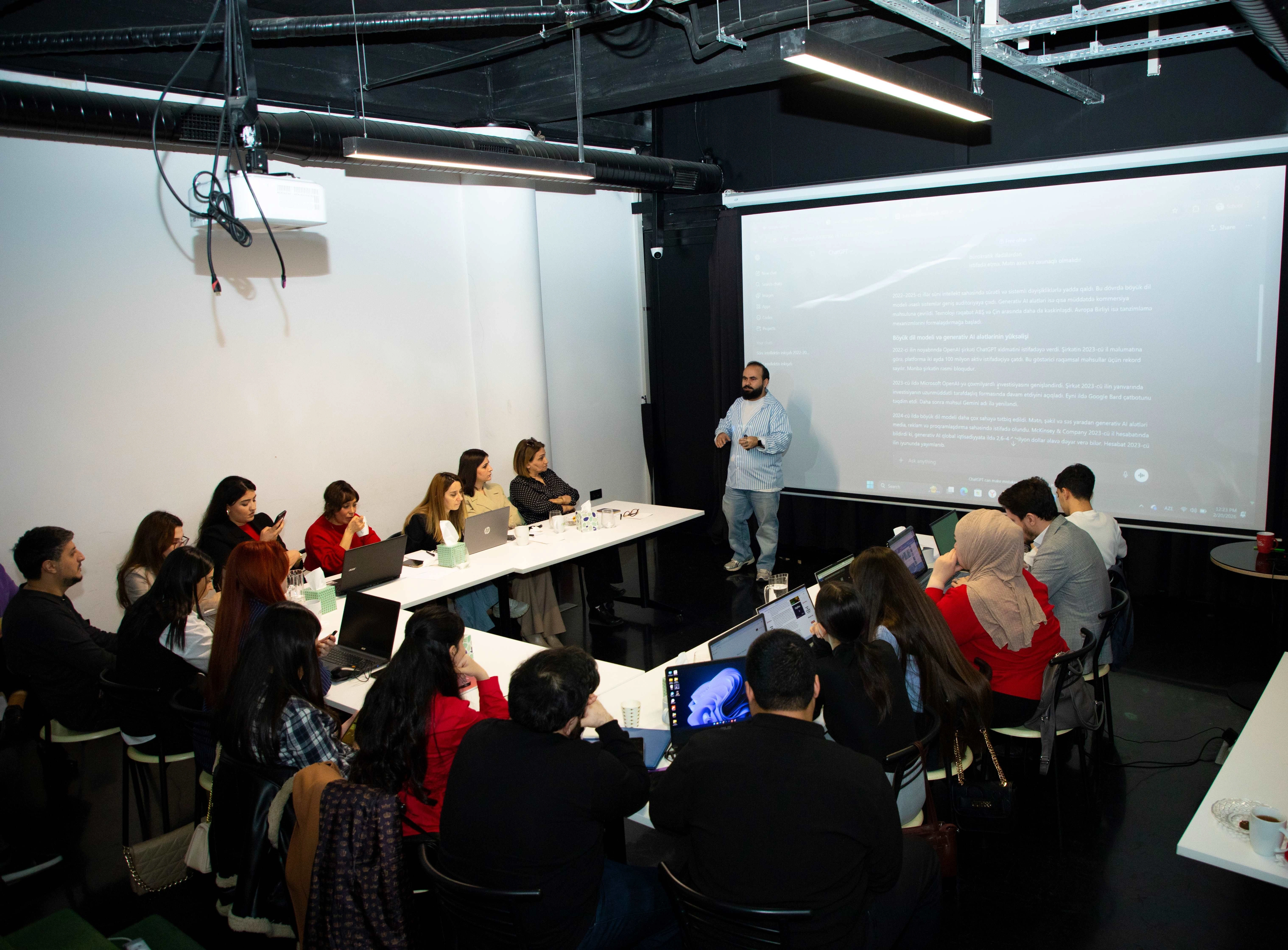 Praktiki hissədə isə iştirakçılar süni intellekt alətlərindən istifadə edərək mətnlər hazırlayıb, redaktə edib və nəticələri birlikdə müzakirə ediblər.