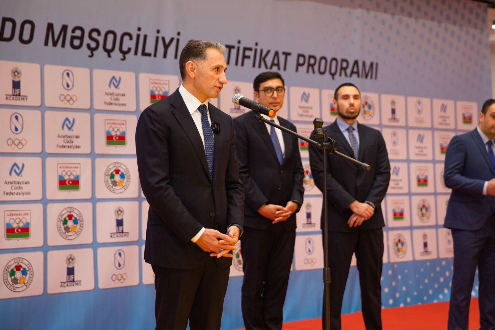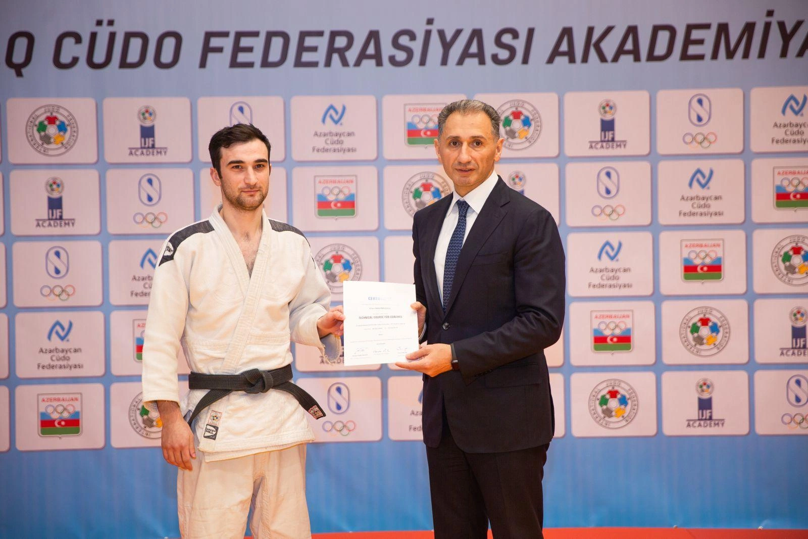 "Report" xəbər verir ki, tədbirdə gənclər və idman naziri Fərid Qayıbov, Milli Olimpiya Komitəsinin vitse-prezidenti Zemfira Meftahətdinova və baş katibi Azər Əliyev, Azərbaycan Cüdo Federasiyasının (ACF) prezidenti Rəşad Nəbiyev, vitse-prezidenti Elnur Məmmədli və İJF Akademiyasının sədri Envik Qalea mütəxəssislərə sertifikatlarını təqdim ediblər.