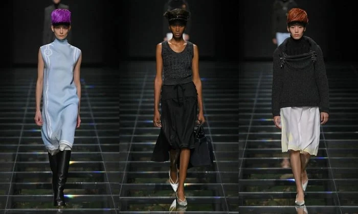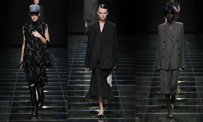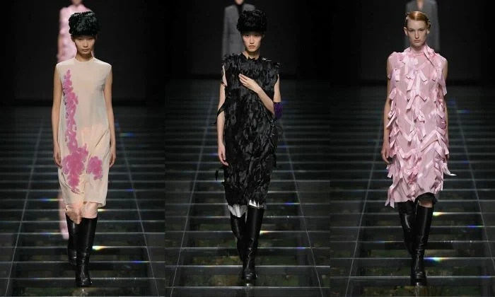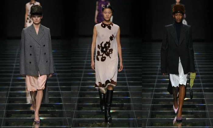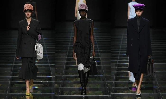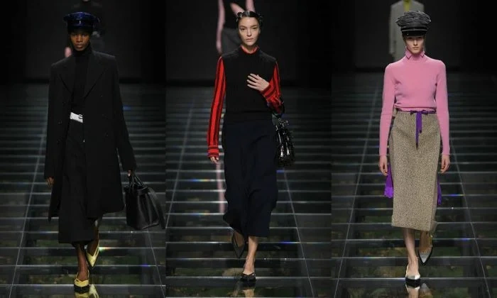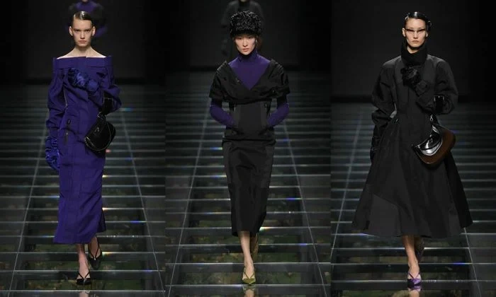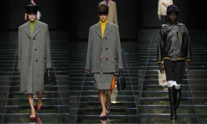 Bu mövsüm “Prada” markasının payız-qış kolleksiyası dəri paltolar, pastel rəngli köynəklər, əyri astarlı şalvarlar və tüklü pilot papaqlardan ibarətdir.