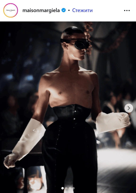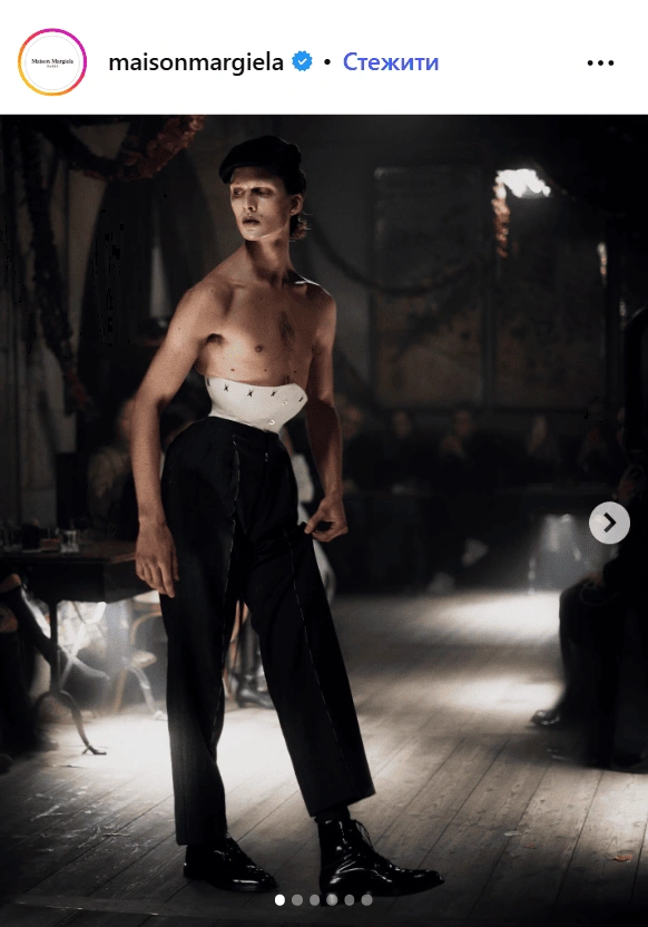 Müasir modada kişi korsetlərinin ən diqqətçəkən nümunələrindən biri modelyer Con Qalyanonun Maison Margiela üçün hazırladığı son kolleksiyada təqdim olunub. Həmin nümayişdə kişi modellər sıx bağlanmış korsetlərlə səhnəyə çıxaraq teatral və qeyri-adi görünüş nümayiş etdiriblər.